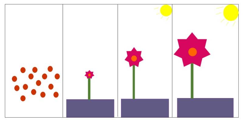 Uw kind begint namelijk niet alleen aan deze training. Het gaat uw hulp nodig hebben. Ik wil u vragen om de onderstaande afbeelding te bekijken. U kunt er namelijk zelf voor kiezen tot welke hoogte uw kind groeit. Wanneer u uw kind ondersteunt, begeleidt en complimenteert bij de training zal het kind uitgroeien tot de grootste bloem. Het is dus allemaal mogelijk!
